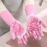 1Pair Dishwashing Cleaning Gloves Magic Silicone Rubber Dish Washing Gloves for Household Sponge Scrubber Kitchen Cleaning Tools $3.74