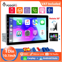 Podofo 1Din 10.1” Carplay Car Stereo Radio Android Auto Mirror Link MP5 Player HD Bluetooth FM Receiver USB AUX Touch Screen $90.56