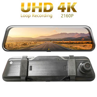 High definition Panoramic Reverse 10 inch full screen touch streaming media Rearview mirror Front 4K 2160P Dashcam Rear Camera $80.23