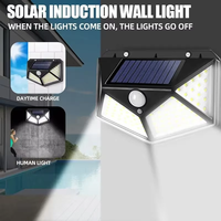 100 LED Solar Wall Lamp All Sides Luminous Motion Sensor Human Induction Courtyard Waterproof Stairs Outdoor Wall Light $5.73