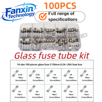 100pcs Set Kit 5x20mm 0.2A-20A Fuse Assorted Kits DIY Quick Blow Glass Tube Fast-blow Glass Fuses 0.25A 0.5A 1A 2A 3A 5A 8A 10A