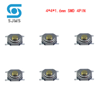 SJMS 100PCS Waterproof Copper Pillar Tactile Push Button Switch 4x4X1.5 Micro Switch 4*4*1.5 mm mini Tact Switch SMD 4 Pin $1.20