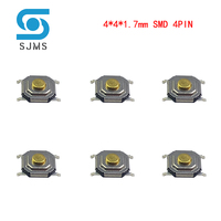 SJMS 100PCS Waterproof Copper Pillar Tactile Push Button Switch 4x4X1.7 Micro Switch 4*4*1.7 mm mini Tact Switch SMD 4 Pin $1.45