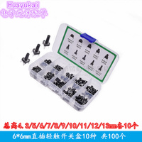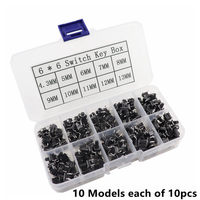 100PCS/BOX 10 Values Tactile Push Button Switch Mini Momentary Tact Assortment Kit DIY for Switch 6*6 4.3MM~13MM DIP-4P $2.66