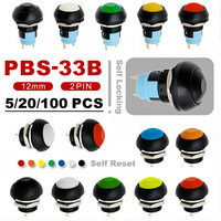 5/20/100Pcs 12mm Momentary Push Button Switch 2Pin Self-Reset/Locking ON-OFF Mini Round Switch SPST NO PBS-33B $2.79