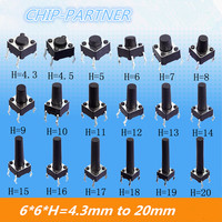 100pcs Black Copper 4Pin 6*6*4.3/4.5/5/6/7/8/9/10/11/12/13/14/15/16/17/18/19/20mm Toy Mini Micro Push Button DIP Tactile Switch $2.50