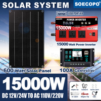 SOECOPO 15000W Full Solar System Kit 600W Panel Inverter (3 Sockets 8 USBs)12V/24V To 110V 220V 100A Controller for Home Camping