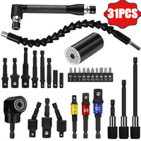 A27F-Flexible 31PCS Drill Bit Extension Set Rotatable Socket Adapter Hex Shank 105° Right Angle Screwdriver