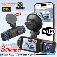 1080P 3 Channel Car Dash Cam 3-inch IPS Screen Three Lens Car 170° HD Record Front/Interior/Rear View Camera with Free 64G TF Card Night Vision Parking Monior