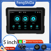 For Motorcycle 5 Inch Carplay Waterproof 1080P BT WiFi Wireless Android-Auto DVR Monitor Dash Cam GPS Navigation TPMS Portable $49.73