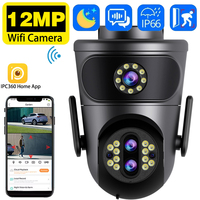 12MP 6K WiFi IP Camera Outdoor 8X Zoom Dual Screens 6MP PTZ Wifi Surveillance Camera Night Vision ICSEE APP CAM Human Detection $40.11