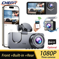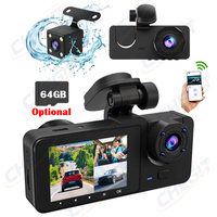 1080P 3-inch IPS Screen Triple Lens Car Dash Cam with 64GB Memory Card Car Record Front + Interior + Rear View Camera $36.03