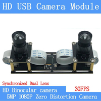 HD 5MP Non Distortion Flexible Synchronization Stereo Webcam 1080P 30FPS Dual Lens USB Camera Module 3D Video VR Virtual Reality