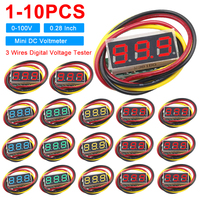 10pcs nMini Digital Voltmeter Ammeter DC 100V 10A Voltmeter Current Meter Tester Blue+Red Dual LED Display
