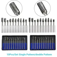 10pcs Carbide Burr Set Hard Alloy Tungsten Steel Double Cut Rotary File Milling Cutter Head Woodworking Grinding Carvin