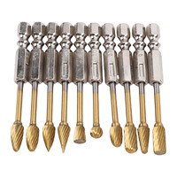 10pcs/set 6.35mm Rotary File Double Slot Hexagonal Handle Grinding Drill Bit Polishing Tungsten Steel Electric Grinding Tool