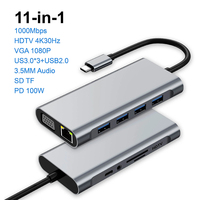 11-IN-1 Type-C HUB With 4K HDMI-Compatible VGA USB-C PD USB3.0/2.0 RJ45 Ethernet SD/TF Card Reader 3.5mm AUX USB Extension Hub