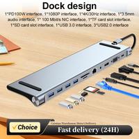 11/12 in 1 4K USB Type C HUB USB 3.0 Dock station HDMI-Compatible Splitter USB HUB Card Reader PD Docking station for MacBook PC