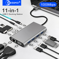 KEBIDUMEI USB Docking Station 11-in-1 USB 3.0 HUB USB C Splitter Type C to 4K HDMI VGA PD RJ45 100M Network Adapter for Laptop
