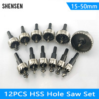 12PCS High-Speed Steel Hole Saw Set 15-50mm HSS4241 Drill Bit Alloy Metal Cutting Tool for 2mm Thick Sheets