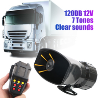 7-Sound Loud Car Warning Alarm Truck Alarm Loudspeaker 12V Siren Air Horn Megaphone Police Firemen Car Horn 110DB $14.93