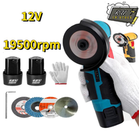 12V 19500rpm Brushless Angle Grinder with Battery Indicator Electric Grinding Cordless Mini Polishing Machine Diamond Cutting Grinder 1/2 Batteries – EU Plug Two Batteries