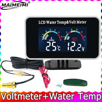 Water Temperature Meter Car LCD Voltmeter+Thermometer Gauge 2in1 Temp & Voltage Meter 10mm Sensor 12V/24V $14.81