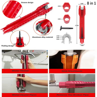 5/8/14 In 1 Flume Wrench Sink Faucet Plumbing Tools Wrench 8 In 1 Multifunctional English Key Repair Plumbing Wrench Tool