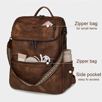 Women Men School Bags PU Leather Backpacks Multifunctional Vintage Waterproof Travel Backpack Retro 15.6 Inch Laptop Bag for Men