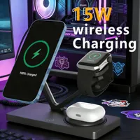 3 in 1 Magnetic Wireless Charger Stand Foldable for iPhone 15 14 13 12 Pro Max Airpods IWatch 9 8 7 6 Fast Charging Dock Station