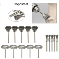 15pcs/set 15mm Stainless-Steel Wire Cup Wheel Brushes Polishing Brush For Rotary Tool Metal Rust Removal Polishing Brush