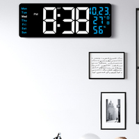 New 13/16 Inch LED Large Digital Wall Clock Remote Date Adjustable Alarms Control Temperature Off Brightness Power Clock Display $25.15
