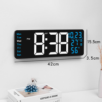 16-inch large-screen digital wall clock temperature date week display remote control double alarm clock 12/24H LED wall clock $26.84