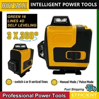 16-Line Strong Green Light 4D Remote Control Laser Level Measure with Wall Attachment Frame