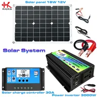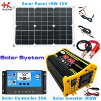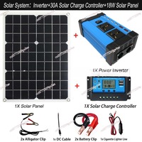 18W 12V Solar Panel Solar Power System Portable 4000W Power Inverter With 2 USB Ports 30A Solar Charge Controller LED Screen Display – Black 12V to 220V