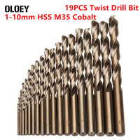 19pcs 1-10mm HSS M35 Cobalt Twist Drill Bit Set for Metal Wood Drilling