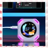 2.1-inch Water-cooled IPS USB Secondary Screen Built-in Screen Monitor Computer Status 360-degree Rotation 480×480 LCD Display CPU GPU RAM HDD Monitoring Device – White