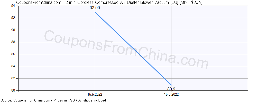 Check out price history chart (for all/most countries) for 2-in-1 Cordless Compressed Air Duster Blower Vacuum [EU]. The lowest price was: $80.9.