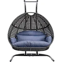 Double Egg Chair with Stand, 2 Person Heavy Duty Hanging Wicker Rattan Swinging Chair Hammock Nest Chair for Indoor Outdoor