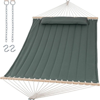 For 12 FT Double Quilted Fabric Hammock with Spreader Bars and Detachable Pillow, 2 Person for Outdoor Patio Backyard
