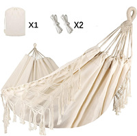 Large Double Deluxe Hammock with Woven Tassels Hanging Bed 2 Person Hammock Leisure Thickened Canvas Swing Chair Bedroom