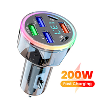 6 Ports Car Charger 200W Fast Charging Digital Voltage Display PD QC3.0 USB C with Ambient Light Adapter for IPhone Samsung $3.45