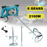 2100W High-power Industrial Mix Electric Concrete Mix 6 Gears Variable Speed Cement Mortar Plaster Mixer Blender Paint Mix