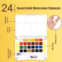 MIYA Solid Watercolor Paint Set 24/36 Colors Portable Small Box with Color Card Brush Pen for Student Beginner Art Supplies