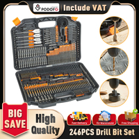 Podofo 246Pc Bit Combination Tool set with HSS Twist drill Cement drill Construction Drill Flat Head Drill Sleeve for Woodwork $46.71