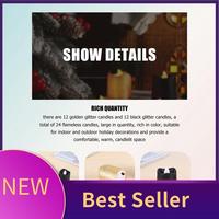 A15F-24 Packs Gold Flameless Votive Candles Black Glitter LED Tealights Battery Operated Tea Lights Warm Yellow Light Holder