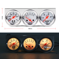 Universal 2inch 52mm Triple Gauge Set, Oil Pressure Gauge Water Temp Temperature Ammeter Car Auto 3 Gauges Cluster Set kit