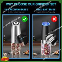 1pcs/2pcs Electric battery Automatic Salt And Pepper Grinder Set Rechargeable Gravity Spice Mill Adjustable Kitchen Tools $10.36
