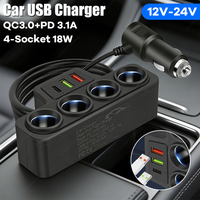 Car Cigarette Lighter Adapter QC3.0+PD 3.1A 3 USB Ports Car USB Charger 4-Socket 18W Fast Charger Plug USB Phone Charger Adapter $6.85