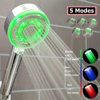 Temperature Control Colorful Shower Head 5 Modes Adjustable LED Spray Nozzle 3/7 Color Change High Pressure Large Flow Shower $1.71